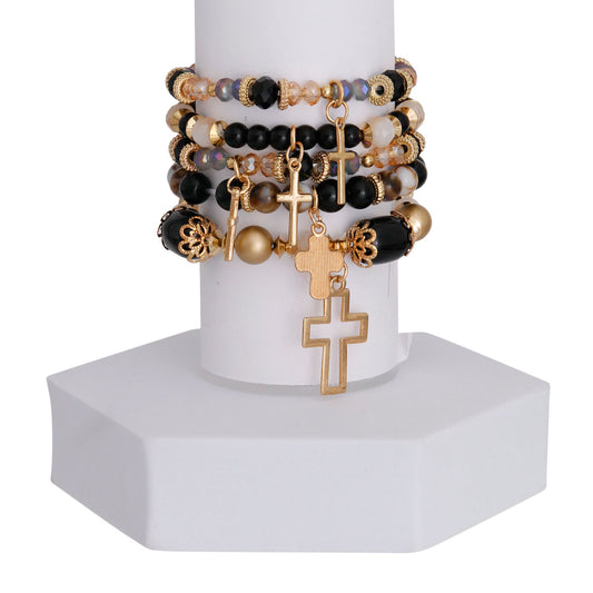 Black Glass Bead Cross Bracelets