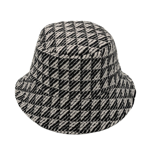 Black Geo Pattern Topstitch Bucket Hat