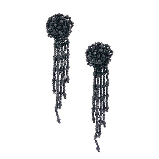 Black Glass Bead Ball Fringe Earrings