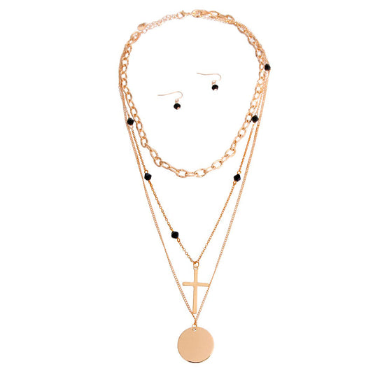 Black Glass and Cross Charm Necklace
