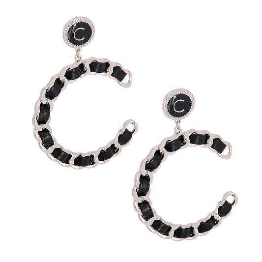 Black Woven C Designer Silver Earrings