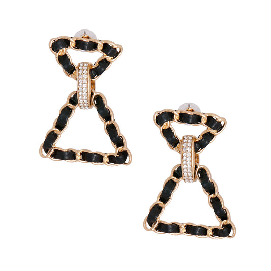 Sold outBlack Woven Gold Triangle Earrings