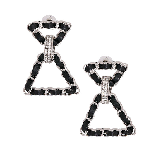 Black Woven Silver Triangle Earrings