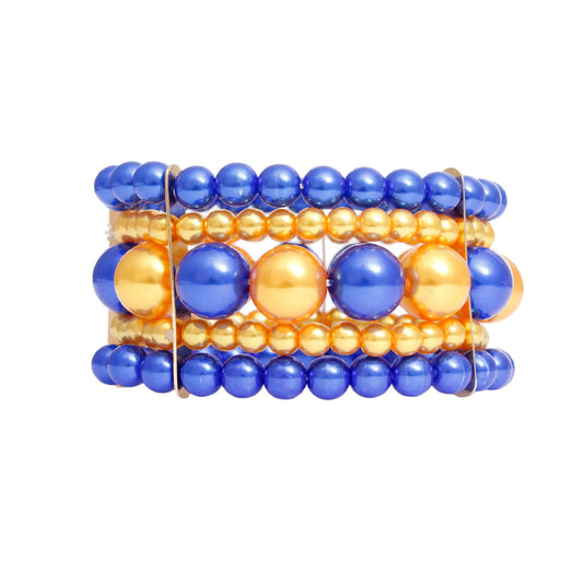 Bracelet Blue Gold Stacked Pearls for Women