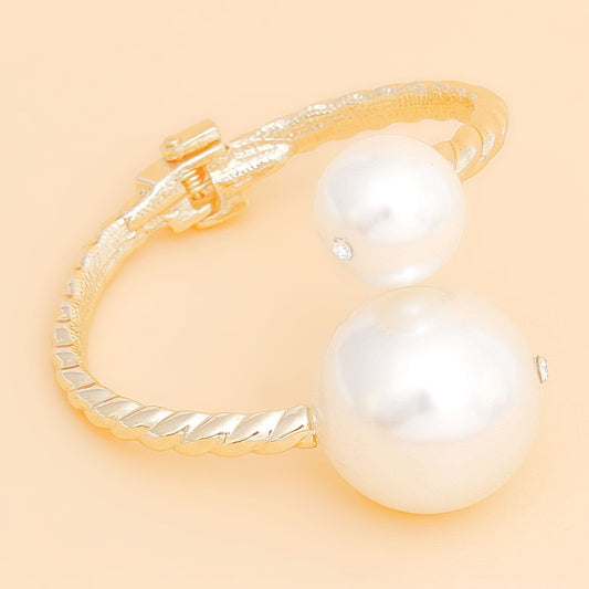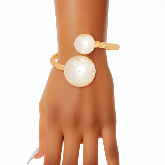 Bracelet Cream Pearl Cable Texture Hinged Cuff