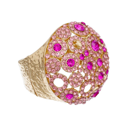 Cuff Domed Pink Round Rhinestone Chunky Bracelet