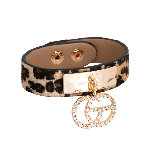 Silver Cuff with Variety of Chain Links Rhinestones and Black Vegan Leather