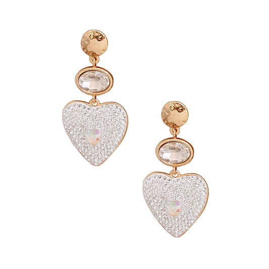 Gold White Stone Heart Earrings