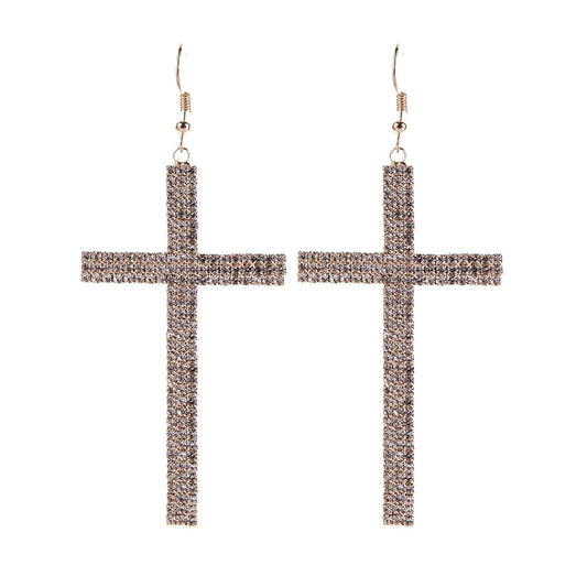 Gold Pave Cross Fish Hook Earrings