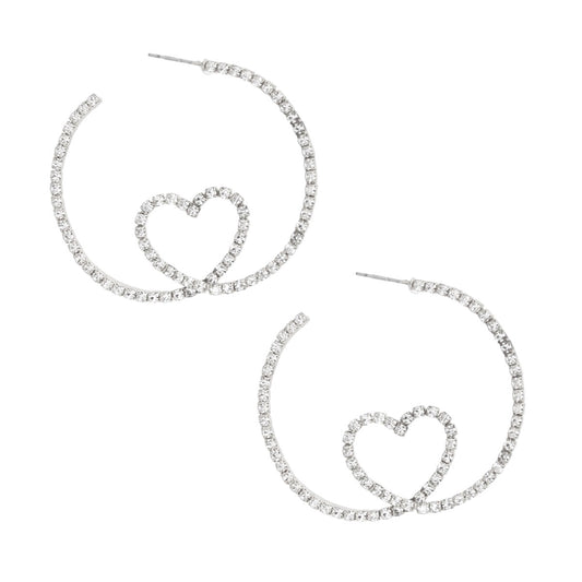 Hoop Silver Pave Looped Heart Memory Wire Earrings
