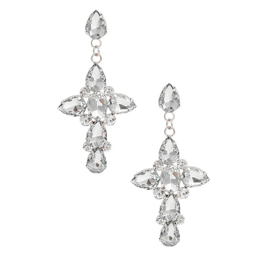 Aurora Borealis Teardrop Crystal Cross Earrings