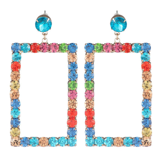 Rainbow Rhinestone Rectangle Earrings