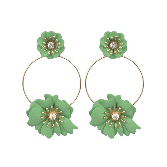 Green Coated Flower Drop Hoop Earrings