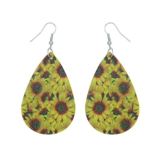 Sunflower Printed Teardrop Earrings