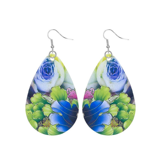 Various Flower Printed Teardrop Earrings