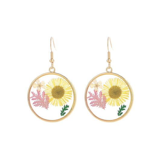 Round Gold Dried Flower Earrings