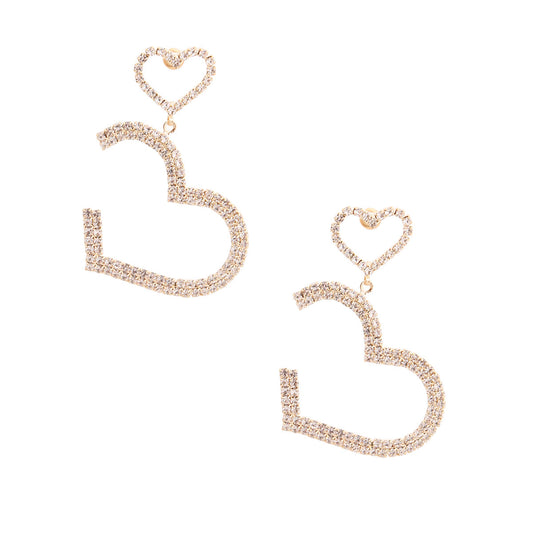 Gold Pave Drop Heart Earrings
