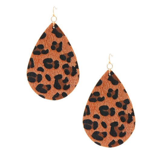 Leopard Fur Large Teardrop Earrings