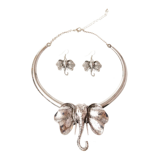 Burnished Gold Burnished Metal Elephant Necklace Set