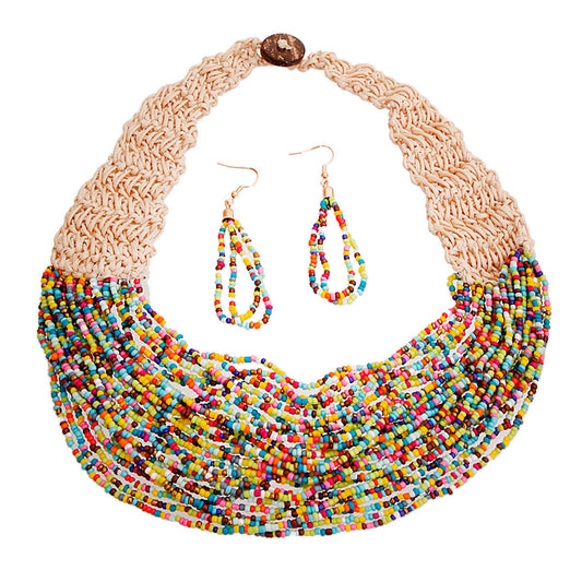 Multi Color Seed Bead Layered Necklace