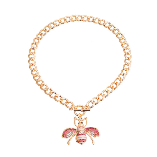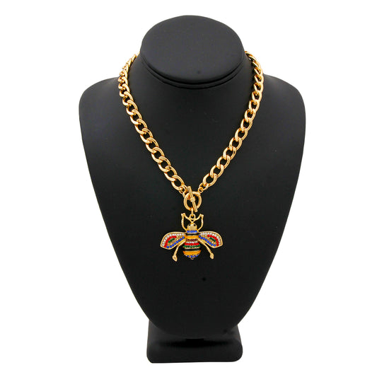 Designer Style Multi Color Rhinestone Bee Toggle Necklace