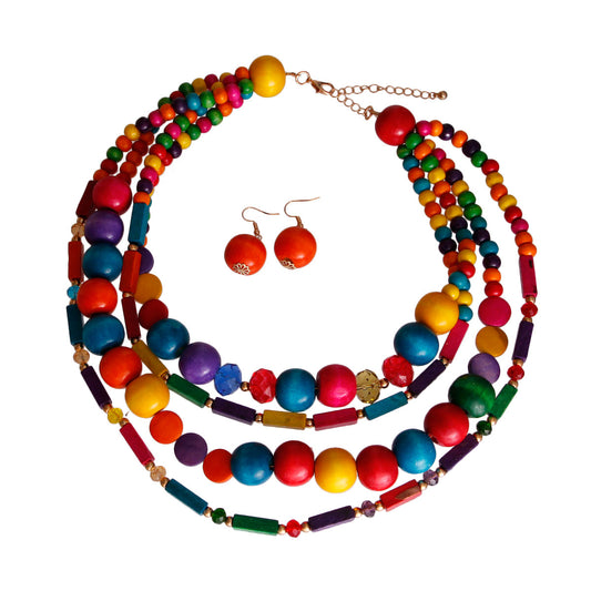 Rainbow Wooden Bead 4 Strand Necklace