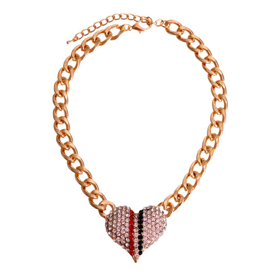 Red Green Stripe Rhinestone Heart Necklace