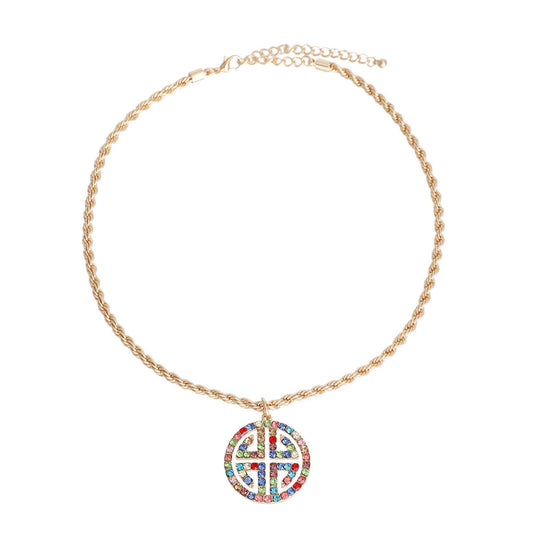 Gold Cable Chain Aurora Borealis Greek Necklace