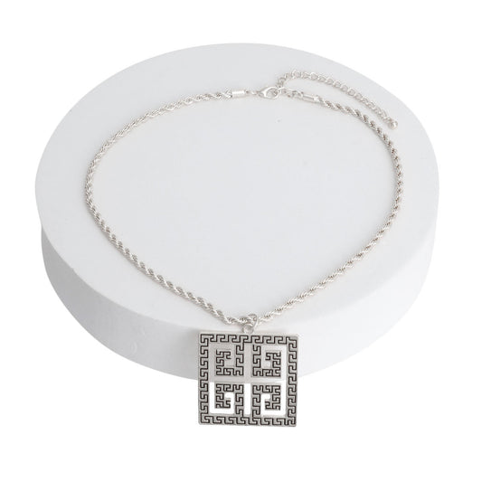 Silver Square Greek Key Pendant Necklace