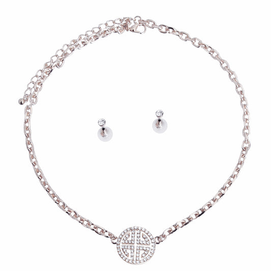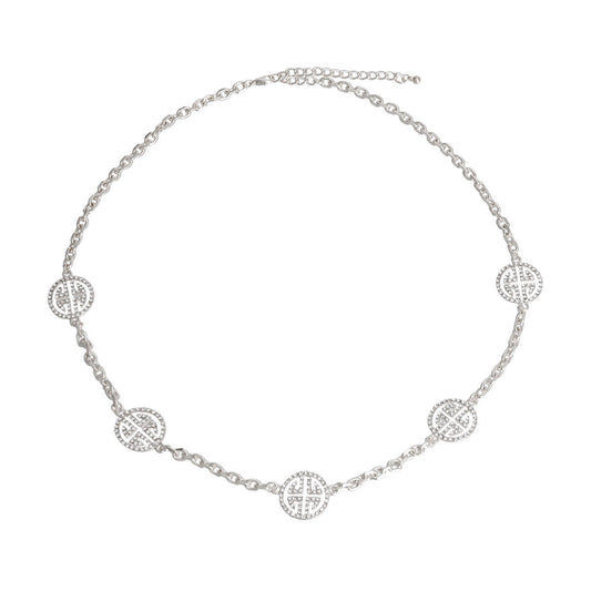 Silver Station Round Greek Key Necklace