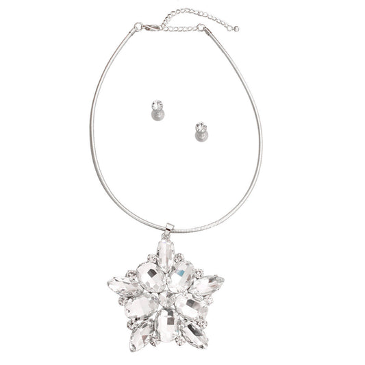 Silver Teardrop Crystal Pendant Necklace