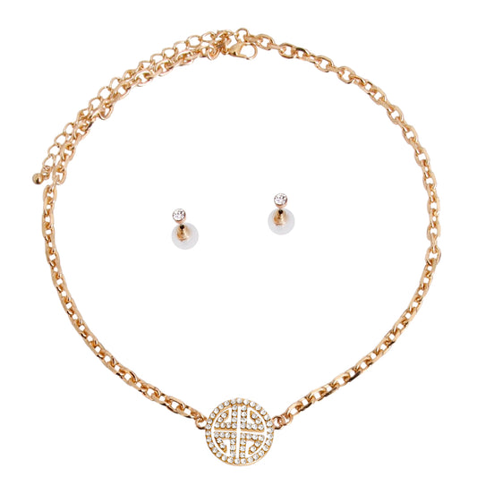 Gold Station Round Greek Key Necklace