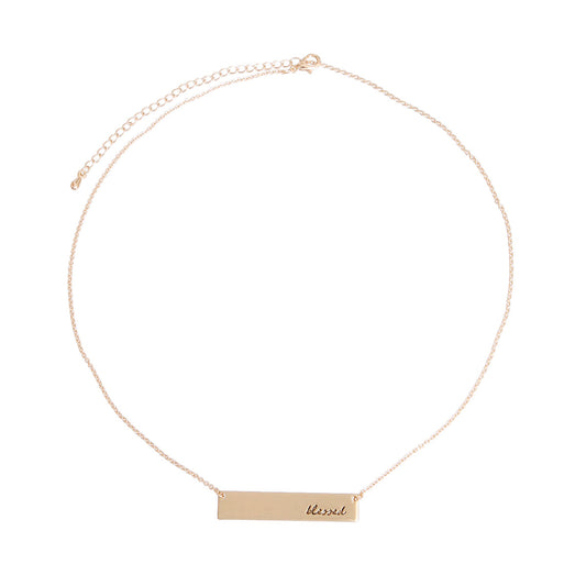 Sold outGold Script Blessed Plate Necklace