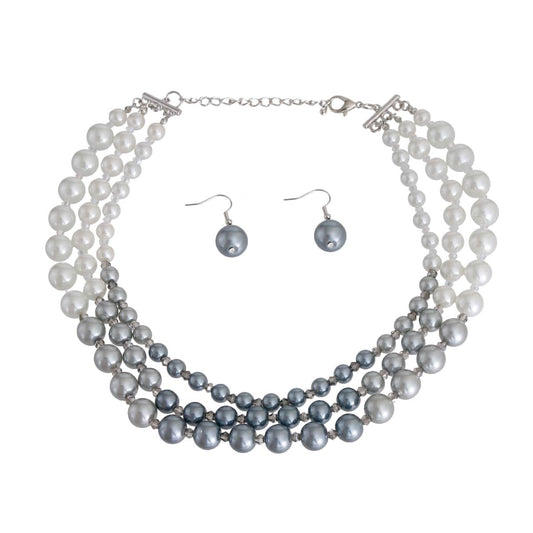 Pure Radiance: White Pearl 3-Strand Rhodium-Plated Layered Necklace Set