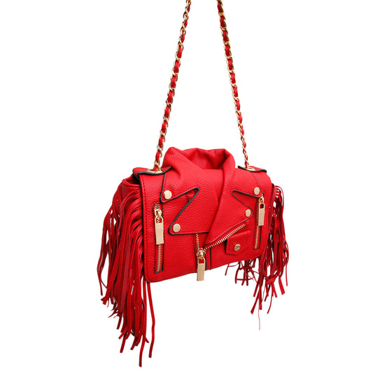 Red Moto Jacket Fringe Crossbody