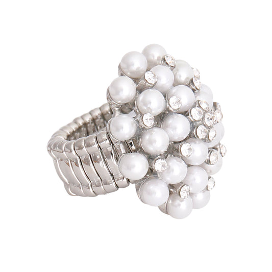 Cocktail Round Cut Aurbo Crystal Silver Ring