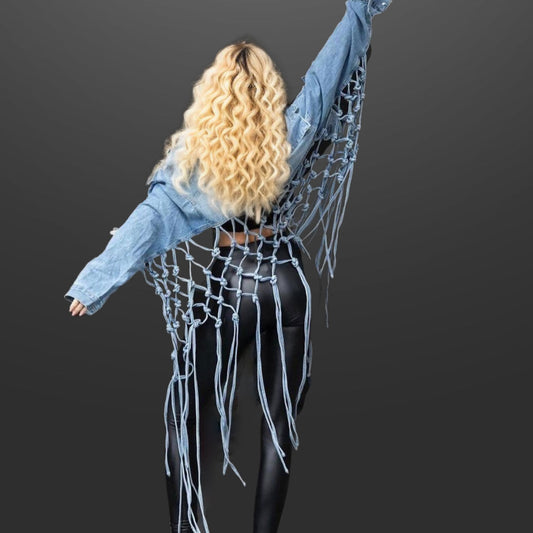 Sold out Sold outXL Knotted Fringe Denim JacketRegular price $68.13 USDRegular priceUnit price per-