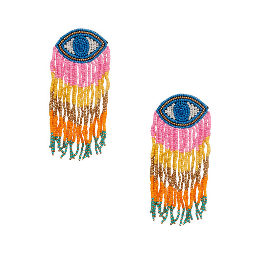 Sold outSeed Bead Evil Eye Fringe Earrings