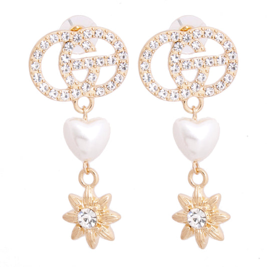 Gold Pearl Designer Heart Star Earrings