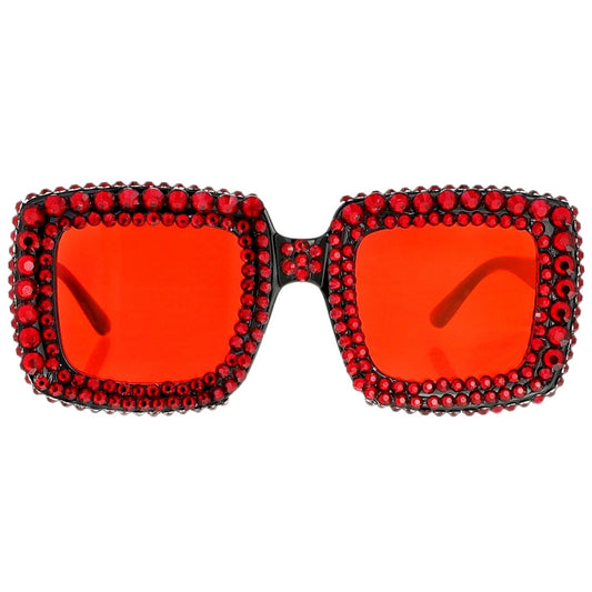 Sparkly Red Stone Square Sunglasses