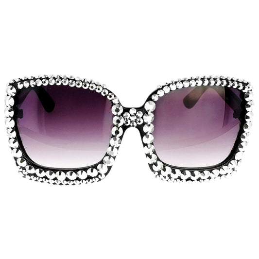 Black Round Rhinestone Sunglasses