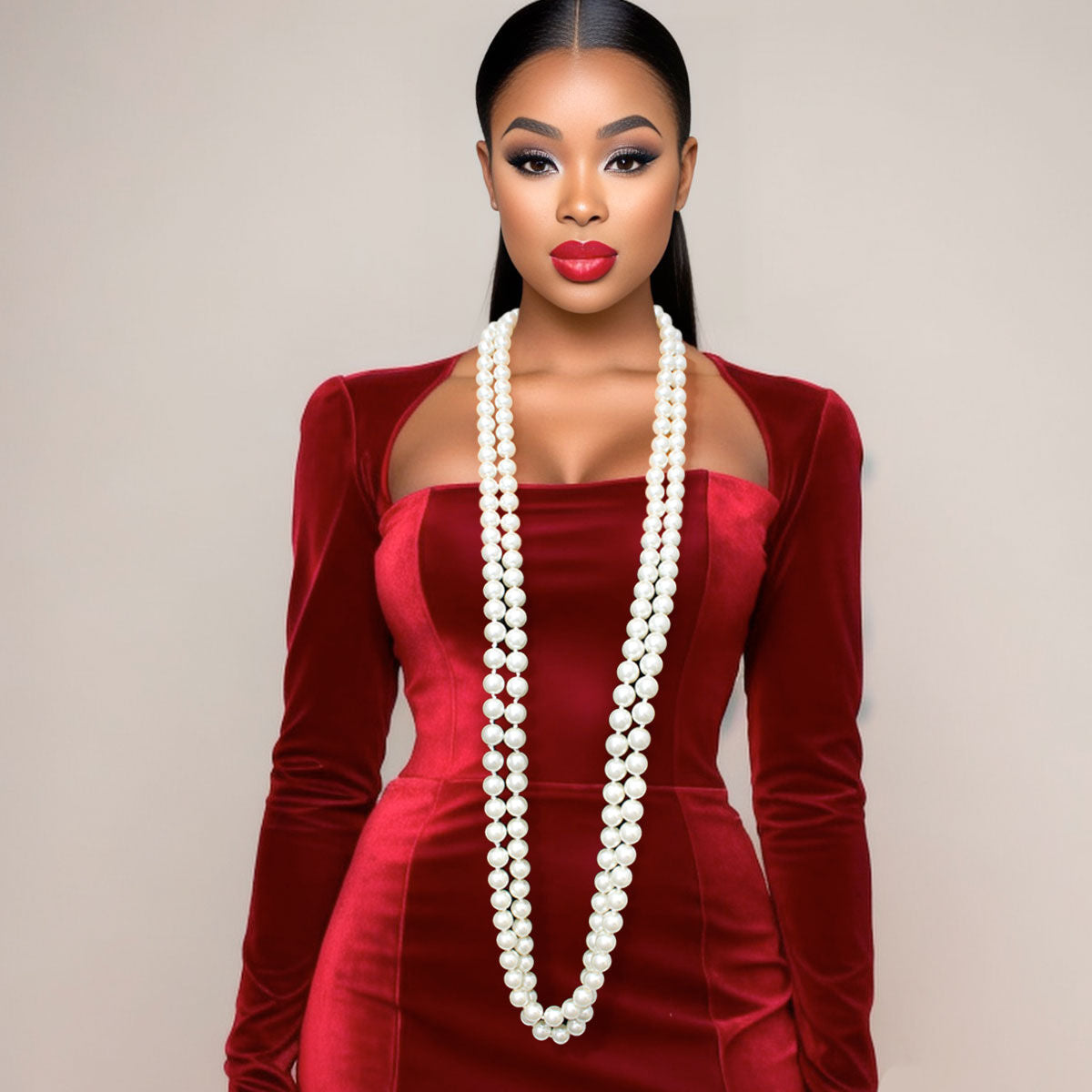 Necklace Cream Glass Endless Pearls for Women
