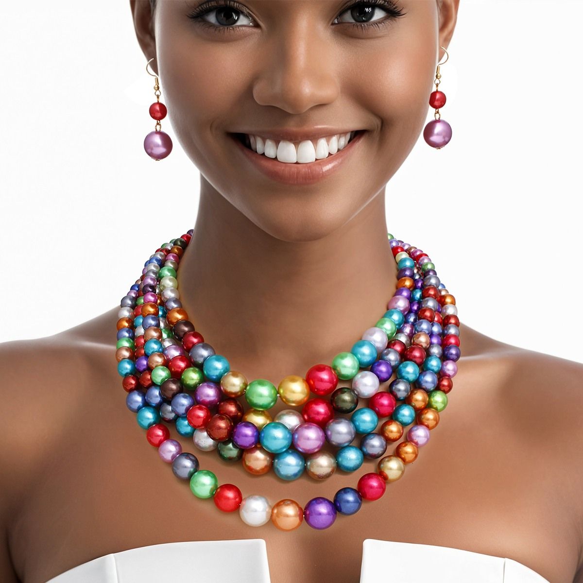Pearl Necklace Dark Multicolor 5 Strand Set Women