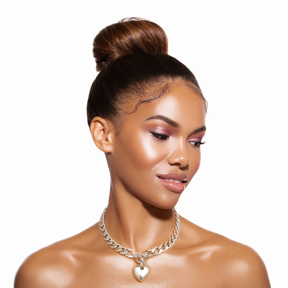 Silver Metal Chain Featuring Silver Metal Heart Charm Toggle Necklace. Heart charm measures 1 inch